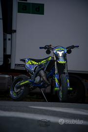 Monta un po di accessori come: testata bud racing (37h) pancia hgs, silenziatore bud racing in carbonio, copri serbatoio cmt, vari pezzi in ergal.