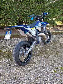 Vendo SHERCO SM 125 2024 con 3800km / 75 ore, completamente originale, monta solamente terminale DBR. -motore cc. 125 2 tempi CARBURATORE keihin da 36 ACCENSIONE ELETTRICA con pulsante al manubrio -RAFFREDDAMENTO LIQUIDO doppio radiatore -cambio SEQUENZIALE a 6 rapporti -frizione idraulica -SOSPENSIONI KAYABA REGOLABILI -ottima impostazione di guida, agile e sicura. -IMPIANTO FRENANTE BREMBO Cambio olio eseguito ogni 20 ore Moto paragonabile a ktm sx, yamaha yz, husqvarna tc, fantic xe