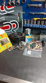 La moto ha subito varie modifiche, ma conservo ancora tutte le componenti originali. Monta un dr 75cc (equivalente ad un top-nero) lavorato con luci allargate, filtro aperto polini, carburatore dell'orto 19, filtro lamellare lamelle in carbonio, molle frizione rinforzate polini, scarico completo kat race per Hm-50 con pancia adattata. insieme alla moto sono disponibili due caschi cross ed una mascherina, ed una serie di parti estetiche non montate sulla moto nelle foto