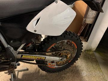 Si vende KTM 450 del 2002 perfetra revisionata totalmente, appena fatto taglianodo, frizione, ammortizatori revisionati ed tanto altro, pronta all'uso, si danno anche diversi accessori come ad esempio plastiche nuove per aggiornamento a modello piu recente. La cifra è poco trattabile e si accettano permute.