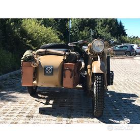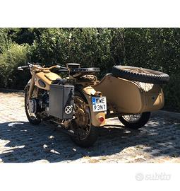 Moto ural dal quale si è provveduto a modificare le parti necessarie per renderla il più simile ad una Sidecar bmw r71 ww2, motore revisionato, cambio revisionato, impianto elettrico portato a 12volt. La moto dal suo restauro avrà percorso circa 1000km.