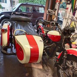Introvabile per allestimento e condizioni sidecar Dnepr mt16 750 ... Anno 2007.. motore 0 (ZERO) km.... Completamente rifatto causa rottura di un cuscinetto di banco... Con l'occasione è stato rifatto tutto e sostituito tutto con roba nuova, migliore ed affidabile... Albero motore nuovo, cuscinetti nuovi, pistoni nuovi, valvole e gommini nuovi, cilindri rifatti, pompa olio maggiorata, modifica passaggi olio, guarnizioni nuove, modifica guarnizioni aste ecc ecc ..... In più è stato completamente rifatto l'impianto elettrico con relè e fusibili nuovi, sostituito gli ammortizzatori originali con dei più performanti bitubo a gas.. serbatoio trattato con tankerite... Selleria rifatta... Batteria nuova.. sicuramente dimentico qualcosa... Ricordo che è un 750, doppia trazione (trazione anche sulla terza ruota del carrozzino), avviamento a pedale ed elettico e retromarcia.... Ha tutto!!! Per altre info, contattatemi....