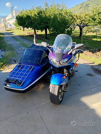 Vendo sidecar Kawasaki zrx1100anno 1996 rifatto nuovo con carenature zxr1200 anno 2006.omologato 4 posti.ruote auto.forcellone arless anteriore e post.barra led.radio.sella e sedile carrozzino nuovi.manopole riscaldate.fari tutti a led.cupolino alto turismo.copriserbatoio in pelle e doppie carene e cupolino da aggiungere.se interessati contattare wassapp 320 1730691.prezzo13500 trattabili.