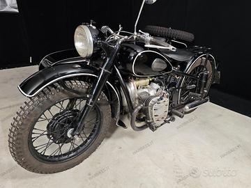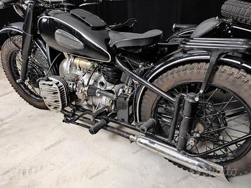 Icona della seconda guerra mondiale, moto con balestre nel carrozzino e leve rovesce sul manubrio. Completamente restaurato Sidecar con retromarcia. Targa e documenti italiani. Motore rifatto completamente ora ha un centinaio di km. Il sidecar è pronto all’uso.