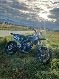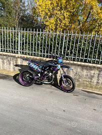 come da titolo smembro hm tpr 86 per inutilizzo. la moto monta i seguenti pezzi: -maxikit tpr 76 (venduto) ho disponibile solo l'albero tpr corsa 39. -pwk 28 mm -filtro aperto malossi E13 -selettra mhr team 2 (venduta) -vl18 (nuovo di scatola) -Maxikit tpr 86 (nuovo di scatola) -Collettore malossi 360 -frizione malossi con molle da 110kg -krm 80-90 (venduta) -radiatore destro -CICLISTICA: -forcelle paioli 41mm appena revisionate (vendute) -ammortizzatore posteriore hm 50 -pinza anteriore ajp appena revisionata con pasticche nuove -pinza posteriore hm 50 appena revisionata con pasticche nuove -pompa posteriore hm 50 -pompa anteriore semi radiale 16x18 -ESTETICA: -copri sella wd racing completamente personalizzato -manubrio krm 28mm nero/viola (venduto) -riser manubrio krm 28mm (viola) (venduti) -paracolpi krm per manubrio 28mm (nero viola) (venduto) -plastiche completamente nuove e grafiche personalizzate -pedalina cambio krm (nero viola) -tappo olio carter krm (viola) -placchetta miscelatore krm (viola) -parapignone nero (am6) (lucido) -cerchi bicolor nero viola (SFUMATI) (venduti) -portatarga pieghevole dev and creft -tubi radiatore viola (venduti) -manopole krm (nero viola) (vendute) -impianto elettrico energy sistem (completo di batteria) -viti collettore am6 (viola) -parasteli graficati -parafango yz85 graficato -pedalina accensione am6 (viola)