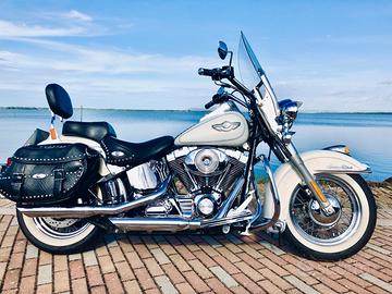 Ho 76 anni, mi chiamo Artu’ e questo è il mio CAVALLO BIANCO. Sono il suo unico proprietario, comprata dal concessionario ufficiale NUMERO UNO di Roma nel 2005,edizione speciale del centenario. Solo 39000km(poco più di un rodaggio per un motore harley) Modello Heritage classic (eredita classica) bianco madreperla; La moto più iconica e suggestiva della legenda Harley Davidson. Curata in ogni piccolo dettaglio ma senza alterarne lo stile inconfondibile, Nessuna modifica strutturale,solo aggiunte o sostituzioni di accessori originali (pneumatici fascia bianca,marmitte senza silenziatore,pedane e comandi,manopole,porta targa,paragambe,coperture cromare ,ecc) Volendo tutti accessori facilmente sostituibili perché il divertimento è quello di trasformarla in quella che sarà la TUA moto Harley. Io non comprerei mai una moto supermodificata e incasinata da qualcun altro Non sarebbe la MIA moto. A forza di modifiche,ammodernamenti,innovazioni (solo per strategie di marketing) gli ultimi modelli H.D, stanno perdendo tutto il fascino e la classe della MITICA LEGENDARIA HARLEY DAVIDSON. Per comprare oggi una moto nuova come la mia,con tutti i suoi accessori(peccato che cosi bella non la fanno più) ci vorrebbero almeno 40000€; un prezzo equo per la mia moto sarebbe almeno di 15000€, Ma me la sono goduta alla grande e adesso non ho più tanta voglia di perdere tempo ,se qualcuno vuol fare un buon affare la SVENDO a solo 13000€ (Senza cambi,cose strane e trattative)