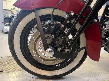 Softail Springer 1997 – Parzialmente customizzata. Motore e impianto elettrico recentemente rivisti; contachilometri sostituito a causa di un guasto. La moto viene consegnata tagliandata, revisionata e completamente controllata. Omologata per gomma anteriore 130/90-16, con pneumatici conformi a libretto.