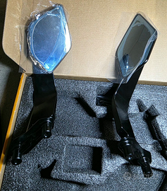 Vendo specchi carena pieghevoli copia rizoma nuovi mai montati, ultimo modello visibilità ottima!! Attacco SOLO T max 2025. In piu porta cellulare BCD da manubrio, questo monta dal modello 2022 in poi..