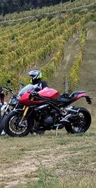 Triumph Speed Triple 1200 RR – Pari al nuovo Vendo splendida Triumph Speed Triple 1200 RR in condizioni impeccabili. La moto combina il fascino delle cafe racer con prestazioni da superbike moderna. Sempre tenuta in garage e manutenzionata regolarmente. Anno: [2024] Chilometraggio: [7200] Proprietari: [1] Caratteristiche principali: Sospensioni semi-attive Öhlins Smart EC 2.0, freni Brembo Stylema, cambio elettronico quickshifter e finiture in fibra di carbonio. Accessori inclusi: protezione serbatoio, porta targa lightech, due piccoli silenziatori non omologati non presenti in foto. Visibile zona albenga. Vendo e non svendo a male in cuore per passaggio a moto più versatile, la moto e ancora dentro la scadenza del tagliando e monta delle mitas sport force plus ev all'80%. Sono presenti ancora 2 anni di garanzia che ho esteso al momento dell'acquisto. Astenersi perditempo o affaristi, prezzo trattabile al momento della visione. Valuto scambio con tracer 9 gt, per info contattatemi su whatsapp.