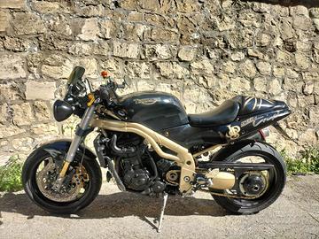 Vendo triumph speed Triple del 2001 (coda corta). La moto NON NECESSITA DI ALCUN INTERVENTO), kit catena corona, pignone nuovi, revisione ok, filtro benzina sostituito, tagliando fatto. La moto monta pedane arretrate, pinze freno anteriore maggiorate, forcelle WP modello Monza (introvabili) con relative piastre. Insieme alla moto e NON separatamente cedo un altro codino posteriore, alcuni pezzi motore funzionanti (corpi farfallati, motorino avviamento ecc) che non vendo separatamente. Scarico originale più scarico HP ( in foto).