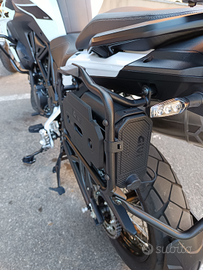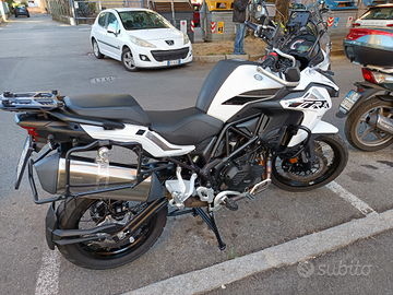 Vendo splendida Benelli TRK 502X, pari al nuovo, immatricolata luglio 2022, unico proprietario. Non incidentata, mai caduta. Completa di bauletto alluminio colore nero 45L, telai valigie laterali marca GIVI, tool box GIVI S250, porta telefono, lampade led, faretti prese d'aria led.