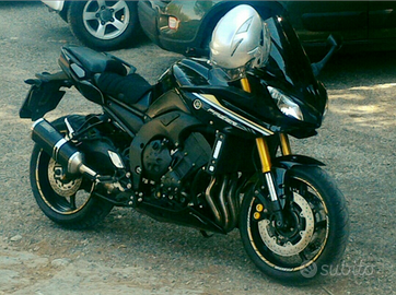 Vendo Yamaha Fazer8 (FZ8 con semicarena e cupolino), Sport Touring, colore nero e oro, anno 2011, 800 cc 110 CV ca, mai incidentata, tagliandata in concessionaria ufficiale, sempre in box chiuso e coperta, km 45000 circa. Lavori eseguiti: trasmissione finale e sost. olio forcelle e molle Ohlins fatti a 39000 km, gomma ant. 90%, posteriore 60%, sostituzione alternatore con tipo rinforzato a 42.000 km. Valutazione 5500 / 6000 euro senza alcun accessorio, vendo a 5800 senza alcun accessorio, 6300 euro tutta accessoriata, (cavalletto centrale 200 euro, cupolino 120 euro, frecce a led 150 euro, scarico Giannelli 550 euro, puntale sottomotore 250 euro, staffa bauletto 200 euro, bauletto 210 euro, copri radiatore 45 euro, staffe borse laterali morbide + borse 400 euro, leve freno e frizione regolabili in ergal oro 90 euro, paramani 60 euro, alettone anteriore 50 euro). Valuto scambio con moto 1000 /1200 maxi enduro se sono di mio piacimento ( Versys 1000 / 1100, Africa Twin, Multistrada V4, BMW GS R, Valico 900, Tracer 900 GT, BMW XR, ecc) e con conguagli da valutare. Modello prima della Tracer 9.