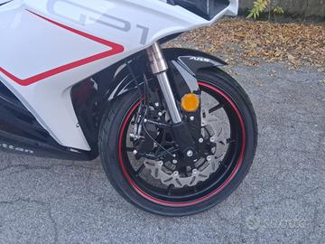 NUOVA SUPERSPORTIVA WOTTAN MOTO GP1 RS 125cc BIANCA A EURO 3390 FRANCO CONCESSIONARIO La GP1 125 RS appartiene a questa seconda specie: una sportiva 125 pensata per chi cerca più di un semplice tragitto. Linee affilate, rombo del motore, risposta immediata: ogni accelerata trasmette il battito della pista, anche nel cuore del traffico.motore monocilindrico DOHC a 4 valvole da 125 cc Euro 5+ eroga 14,4 CVCon raffreddamento a liquido e cambio a sei rapporti, offre una risposta immediata e calibrata, pensata per sentire l'accelerazione e controllare ogni curva con precisione.La nuova forcella a steli rovesciati da 37 mm e il forcellone in alluminio aumentano rigidità e stabilità, mentre il doppio disco anteriore da 300 mm con pinze radiali e l'ABS a doppio canale offrono una frenata degna di moto di cilindrata superiore.Sul fronte tecnologico, la GP1 125 RS è dotata di un display TFT a colori con connettività Bluetooth e funzione mirroring, illuminazione full LED e porta USB .4 ANNI DI GARANZIA WOTTAN MOTO POSSIBILITA' DI FINANZIAMENTI A TASSI AGEVOLATI SPEDIAMO I NOSTRI MEZZI GIA' PRONTI PER CORRERE IN TUTTA ITALIA