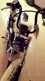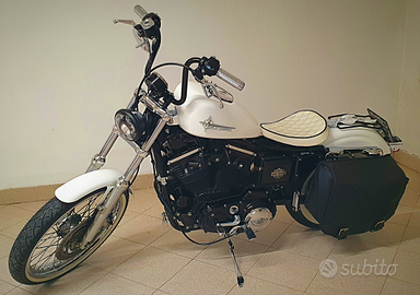 Vendo splendido Sportster Custom del 2002 bianco,recentemente modificato stile chopper con tanti accessori harley-davidson,tagliando,revisione,bollo,effettuato estate 2025,revisionato sospensioni anteriori e colorato steli nero lucido,portato come nuovo il carburatore sostituzione guarnizioni e calibrato da carburatorista,pastiglie freni nuove,montato doppio cavo acceleratore e montato manopole Avon,lavori totalmente eseguiti da officina specializzata in Harley-davidson,in corredo sella singola Pane bianco+sella lunga Badlander harley-davidson+scarichi originali+fender portachilometri originale+manubrio dritto cromato con manopole+frecce anteriori originali+mantenitore di carica+telo copri moto antipioggia.