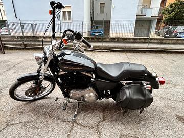 Vendo sportster del 2005 con 54800 km. Moto non perfetta ma perfettamente funzionante, scarichi screaming eagle 2, manubrio alto, borsa laterale, insieme alla moto consegno anche ricambi originali: scarichi originali Harley Davidson, poggiaschiena passaggero HD, portavaliggie cromato, staffe cromate per il montaggio, parabrezza originale, altri 2 manubri (il suo originale ed un'altro cromato).