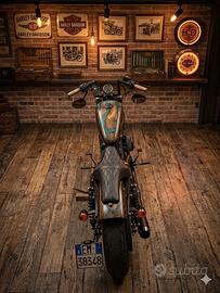 Harley Davidson Roadster XL 1200 CX 2018 Di serie: forcella a steli rovesciati, doppi dischi anteriori e cerchi a razze offset. Moto customizzata per contest Battle Of The king 2018 da concessionario HD Stage 1 Scarico/filtro aria/centralina AW030576 Scarico Bassani 2 in 1 road rage II mega power ( utilizzabile anche con comandi centrali ) Screamin' Eagle Air Cleaner Kit - Round High-Flow Cartuccia ad Alto Flusso "Big Sucker" Licenza a vita per Mappatura Power Vision di Dynojet Inoltre: Frizione Barnett in carbonio Ammortizzatori Short Bitubo black Comandi avanzati Manubrio Z Bar con riser 55 mm Sella Drag specialties Predator Pneumatici Avon Cobra Chrome Carrozzeria personalizzata da Drink Printer Porta targa laterale Leve manubrio nere Frecce a led anteriori Frecce a led 3 in 1 kellermann al posteriore Cover faro anteriore a griglia nero Coperchio accesso alla frizione brass in tinta con carrozzeria Cover filtro aria in tinta carrozzeria Brass Collection Air Cleaner Trim. Coperchio primaria tinta brass ( disponibile ma al momento sostituito con coperchio cromato skull ) Altri dettagli in tinta brass come la carrozzeria ( manopole, pedane, copribulloni ) Sissibar sgancio rapido con schienalino Borsone sgancio rapido in cuoio westernbull Scarichi originali con para calore tinta brass ( al momento installato scarico Bassani come da foto )