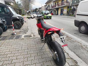 Chilometraggio: 0 Condizioni: nuovo Immatricolazione: Tipologia: Moto - Supermotard Carburante: Elettrica Tipo di cambio: Automatico Questa Supermotard elettrica si distingue per la sua potenza elevata: 60 CV di erogazione istantanea oppure 80 CV con la versione alpha. Esteticamente, presenta un design minimalista, quasi essenziale, con l'unica anomalia visiva data dall'assenza del propulsore termico. Tuttavia, il vero punto di forza risiede nel sofisticato software integrato, che offre la possibilità di personalizzare e limitare ogni parametro di potenza, adattandola a ogni tipo di percorso o esigenza. La moto è costruita su un telaio in acciaio, abbinato a telaietto e forcellone realizzati in lega leggera. Con un peso di soli 125 kg, la Varg SM garantisce un'autonomia urbana stimata di 180 km e richiede solo due ore per una ricarica completa tramite una comune presa domestica. Il quadro strumenti è rappresentato da uno smartphone di elevata resistenza (grado militare), impermeabile e antiurto, che integra funzioni di navigazione GPS e configurazione avanzata del veicolo. . Disponibile in due configurazioni: la versione Standard da 60 CV a 12.990 euro e la più potente Alpha da 80 CV al prezzo di 13.990 euro. . Prezzo al netto di ecobonus. . Entrambe beneficiano dell'immatricolazione come motocicli da 125 cc. . Le pedane passeggero sono un optional dal costo di 382€ . Finanziamenti personalizzati. Spedizione in tutta Italia. Contatti: , Rivenditore MOTO OK