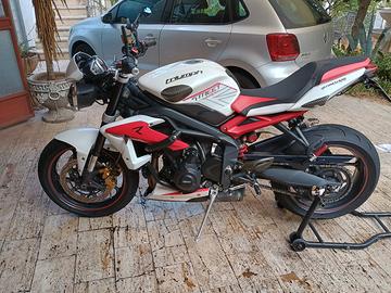 Vendo Triumph street triple r abs del 2013 in ottime condizioni con svariati lavori eseguiti tutti dimostrabili poiché fatti in Triumph Catania . La moto monta filtro sportivo BMC , sonda IAT belinassu , collettori liberi più finale SC project gp m2 omologato con db killer , griglia para radiatore, porta targa lightech , frecce led originali Triumph, para carter GB racing , battitacco carbonio più para serbatoio in carbonio , pedalini guidatore e passeggero rizoma , vaschette freni rizoma , leve pieghevoli e regolabili sifam , paratelaio originali Triumph, sella rinfoderata con tessuto antiscivolo , forcelle revisionate e gomme sostituite con mitas sport force evo da meno di 1000 km. È stato sostituito lo statore e il motorino d'avviamento pochi chilometri fa quindi nuovi .La moto da originale ha 109 CV con tubi in treccia anteriori e posteriori più pompa radiale sull'anteriore, mono posteriore e forcelle completamente regolabili, divertente ad ogni regime . Prezzo poco trattabile.