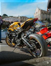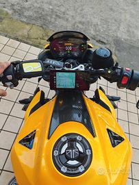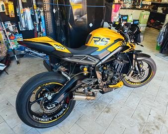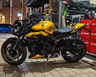 possibilità anche di finanziamento!! totale importo!! Vendo per passaggio a carenata splendida Triumph Street Triple 765 RS, immatricolata a 02/2025. La moto è il riferimento assoluto delle naked medie per tecnologia e ciclistica, tenuta in stato d'esposizione. DOTAZIONE DI SERIE (Il top della categoria): La versione RS nasce pronta per la pista con componentistica d'eccellenza: Freni: Doppia pinza anteriore monoblocco Brembo Stylema e pompa radiale Brembo MCS regolabile. Sospensioni: Forcella Showa BPF e monoammortizzatore posteriore Öhlins STX40 completamente regolabile. Elettronica: Cornering ABS, Traction Control ottimizzato, 5 Riding Mode e Quickshifter bidirezionale di serie. Display: TFT da 5" con connettività My Triumph. UPGRADE E ACCESSORI (Oltre €3.000 investiti): Performance: Scarico completo MT Race (sound incredibile, valore 1.500€) + Filtro aria BMC. Estetica & Aerodinamica: Kit completo Materya (cupolino, ali laterali, baffo sotto faro). Dettagli: Cover serbatoio e pedaline effetto carbonio, adesivi cerchi premium. Protezione: Protezioni motore GB Racing (il top per la sicurezza dei carter). Street Legal: Portatarga Lightech e frecce a LED Nano. Gomme: Pirelli Supercorsa V4 SP (nuove, con meno di 800km). CONDIZIONI: Chilometraggio: 11.000 km. Garanzia: Ufficiale Triumph. Parti Originali: Fornisco tutti i componenti originali (scarico completo, portatarga, ecc.). Moto perfetta, agilissima e con un sound unico grazie al 3 cilindri Triumph accoppiato allo scarico MT Race. No scambi, no offerte al ribasso.