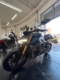 Streetfighter v4S 2022, scarico completo akrapovic, filtro sportivo, portatarga rizoma, frecce rizoma, tappo serbatoio rizoma, codone monoposto in carbonio, viti e paracoppa cnc, sempre tagliandata da officina Ducati. Tagliando effettuato a settembre 2025, tutto in ordine, moto pronta da usare. Gomme e pasticche da sostituire. Sono in possesso di tutti i pezzi originali smontati.