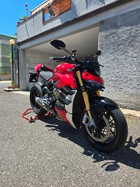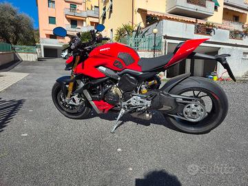 Ducati Streetfighter V4S Garanzia ufficiale valida ancora fino ad agosto 2026, estendibile di un ulteriore anno. Ovviamente sempre tagliandata in Ducati e mappa fatta direttamente in Ducati. Revisione forcelle effettuata a maggio, con olio ohlins, e paraoli e parapolvere skf. Revisione pinze freno effettuata adesso. Gomme Pirelli rosso 4 corsa Ultimo tagliando fine settembre 2025 con sostituzione mozzo ruota posteriore (richiamo casa madre) Accessori: Scarico Miv Pedane arretrate Cnc racing Mappa fatta in ducati Cover forcellone carbonio ducati Griglia radiatore evotech Copri coppa cnc Codone monoposto ducati Cover carter Qualcosa di sicuro mi dimentico. Valore accessori sui 4000? valuto scambio esclusivamente con carente di mio gusto. Per qualsiasi informazione, scrivetemi pure. Francesco