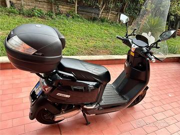 La cosa vantaggiosa di questo scooter rispetto agli altri e' che le batterie sono poste sotto la pedana , lasciando cosi tantissimo spazio nel sottosella !