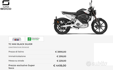 Nuova, come da configuratore da sito Super Soco, costa 4400 €.