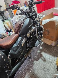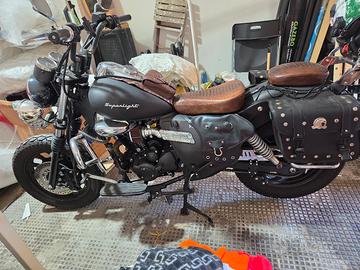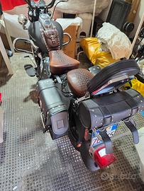 Vendo splendida Keeway Superlight in configurazione custom totale, curata maniacalmente sia nello stile che nella ciclistica. La moto è pronta all'uso, ideale per chi cerca un mezzo con personalità e comfort superiore all'originale vendo a malincuore per motivi familiari. Estetica Unica: Livrea Black, sella comfort in simil-pelle coccodrillo, borse laterali e bauletto anteriore/posteriore coordinati. Meccanica Migliorata: Installato radiatore dell'olio supplementare per un raffreddamento ottimale e filtro aria a cono sportivo. gruppo termico 150cc, centralina aggiuntiva nte bluetooth, camme modificate, terminali aperti, pignone ridotto e catena nuova, oltre numerosi accorgimenti per migliorare le prestazioni. Ciclistica e Comfort: Manubrio alto "Ape Hanger" per una posizione di guida dominante, pedane larghe e paramotore cromato. forcelle anteriori sostituite interamente 1 anno fa. Visibilità: Faro anteriore supplementare e indicatori di direzione custom paramotore e supporti borse cromati originali. Dati Tecnici: Chilometri: 5.870 km circa (vedi foto strumento). Stato: Originali, sempre rimessata in garage. Manutenzione: Regolare, moto pronta a partire, olio freni sostituiti, olio motore sostituito 1 anno fa ma percorsi 1000km passaggio circa 250€ a carico dell'acquirente, guidabile con patente B e può andare anche in autostrada, assicurazione spesso economiche io pagavo 390€ l'anno. la moto è del 2018 io sono il secondo proprietario, presenta qualche segno del tempo, qualche puntino di ruggine o altro tipico di queste moto. cedo insieme numerosi accessori e ricambi mai montati.
