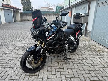 Vendo per mancato utilizzo xt1200z del 2011 perfetta come da foto e super accessoriata, manutenzioni scrupolose e mai un problema. Set valigie in alluminio, doppia serie di paramotori, doppia serie di faretti led, manopole riscaldate, box portattrezzi, selle confort, riser manubrio, biellette per alzare il posteriore, sosp posteriore con molla rinforzata, fatto tenditore catena distribuzione con quello aggiornato x il noto difetto della rumorosità, ultimo tagliando 75.000 km , filtro sportivo e mappatura centralina motore, tomtom rider 500 mappe europa aggiornamenti a vita, cerchio posteriore aggiornato x pignoleria al nuovo modello x scongiurare i problemi che aveva il cerchio della prima serie, regola cupolino, cupolino artigianale in carbonio, scarico arrow, nessun sinistro o caduta, moto impeccabile e pronta a viaggiare, cedo anche borsa morbida da serbatoio e cavalletto spostamoto centrale x il box e sicuramente dimentico qualcosa nell’elenco degli accessori. Parti originali a corredo. No scambi