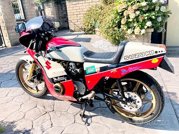Suzuki 500 gs, 1976, elaborato da nuovo nella ciclistica dalla Menani Racing Components, cerchi Campagnolo, scarico Termignoni, tutti le pedane e leveraggi ricavate dal pieno, doppia sella monoposto e biposto, mezzi manubri e carenatura,dischi freni forati,sospensioni più grandi, cambio 6 marce,il tutto eseguito professionalmente dalla Menani,targhe originali, km 36000, unico esemplare in questo allestimento, documenti in regola.