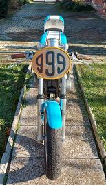Replica moto gara in salita 1972. Forcellone scatolato. Telaio modificato. Avantreno e cerchioni in alluminio Laverda 750. Serbatoio olio e recupero fumi in alluminio. Con documenti, ma demolita.