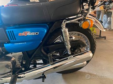Suzuki 550 gt del 1973 tre cilindri 2 tempi lubrificazione separata perfetto nessun lavoro da fare gomme ottime dunlop tt 100 k81 certificato di rilevanza storica FMI e documenti regolari . Modello raro immatricolati in Italia tra i 600 e i 900 mezzi. si valutano permute con kawasaki 500, bsa, triumph epoca