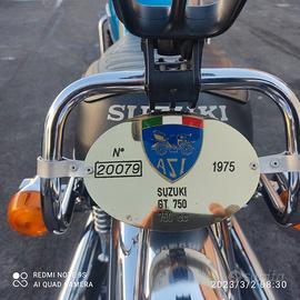 Vendo moto SUZUKI GT750 del 1975, motore 3 cilindri 2 tempi, di colore Blu Ocean, originale in tutte le sue parti (Targa Oro A.S.I.), unica in Italia con cerchi in lega e freno a disco posteriore (accessori originali dell'epoca richiesti all'acquisto dal primo proprietario). Libretto di circolazione a pagine originale. Pronta per passaggio. Prezzo poco trattabile data la rarità della moto. La moto è visibile a Cellamare (BA). Solo contatto telefonico ( 08,30-12,00 / 16,00-19,00) al 3311073232 o via e-mail a palmiottomichele@libero.it