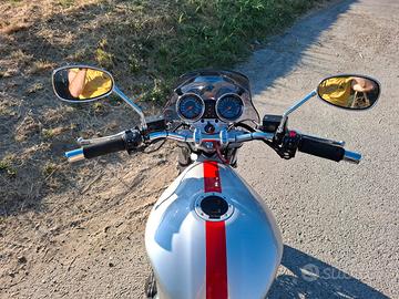 Moto tenuta con cura maniacale da appassionato, tagliandata ogni anno con olio Bartdhal . Batteria nuova, trasmissione nuova. Appena gommata. Tagliando effettuato a Luglio. Revisione effettuata a Luglio. Impeccabile, qualsiasi prova. Nel prezzo sono compresi: 2 bauli + relativi telaietti, portapacchi posteriore, due cupolini di diverse dimensioni, configurabile come visibile nelle foto (streetfighter o tourer). Tutte le parti originali disponibili per poter fare iscrizione a registro storico. Le bande rosse sono dei wrap che possono essere rimossi semplicemente. Moto pronta per la stagione, nessun lavoro da fare