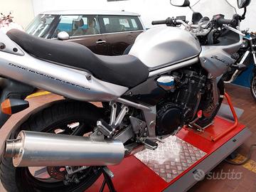 motore ottimo ancora da sfruttare, adatta anche per turismo di coppia in quanto la semicarena funziona egregiamente, leggermente segnata lato sx , per chi la volesse fare naked regalo faro tondo, staffe,cupolino, tutta originale, moto vecchia scuola, si impenna di acceleratore e ti fà sghignazzare dentro al casco, poca spesa tanta resa, prezzo da discount quindi evitate di scrivere offro...le offerte fatele in chiesa