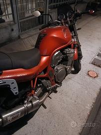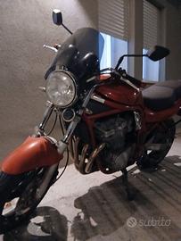 Bandit 98 600 50 mila km perfetta meccanicamentr nuova! ( tutto dimostrabile tramite fattura . Frizione suzuki originale nuova con 2000 km , gioco valvole fatto nel 2024 , collettori carburatori nuovi, revisione completa cafburatori, ammortizzatore posteriore nuovo, forcelle anteriori revusionate ( olio, paraoli e molle progressive) , catena corona e pignone nuovi con 4000 km, sella rifoderata completamente, tubi freni in treccia anteriori e posteriori, scarico omologato in inox mivv, gomme cambiate anno scorso, motorino avviamento nuovo , portapacchi givi e portaborse krauser più bauletto givi maxia 56 con 3 anni di vita! sempre tagliandata ( olio pastiglie ecc) moto ciclisticamente e meccanicamente perfetta. 4 cilindri sacs 600cc da 80 cv ( stessa meccanica dei promi gsxr con meno cilindrata ) raffreddato aria olio con stistema sacs che oltre a lubrificare raffredda anche il motore infatti ha due pompe olio una che lubrifica e una che raffredda ( ad alto volume) è un brevetto che suzuki aveva brevettato a fine anni ottanta e mantenuto fino agli anni 2000 per avere prestazioni di un motore a liquifo ma con un peso inferiore ( gsxr 750 e 1100). Motore conosciuto per la sua indistruttibilità si trovano bandit con 150 mila km chr marciamo tranquillamente sia in versione 600 che 1200