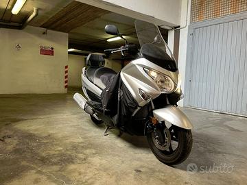 Vendesi Suzuki Burgman 200 (UH200) del 2018 in ottime condizioni generali, non necessita alcun intervento ed è pronto all'uso. Il mezzo viene utilizzato quotidianamente per il tragitto casa-lavoro con un consumo medio che oscilla dai 31 ai 35km/l con percorrenza mista urbana ed extraurbana. Ha un vano sottosella capiente al di sopra di ogni scooter della sua categoria e anche superiori, mai avuto l'esigenza di un bauletto. Addirittura ci ho protato 3 cartoni con pizza da asporto. Tenuto in garage quando non utilizzato e per questo la sella e le plastiche sono in ottime condizioni anche grazie all'utilizzo di prodotti per la pulizia e cura specifici. Piccoli segni dovuti ad una caduta da cavalletto laterale sono presenti sul lato sinistro (maniglia posteriore e fianco alto anteriore). Manutenzione ordinaria eseguita ogni 5.000km presso centro assistenza Suzuki ufficiale, tutto documentato da fatture e di recente ho eseguito i seguenti interventi: