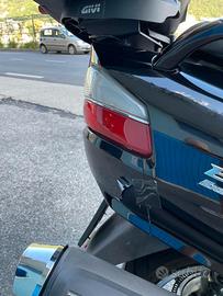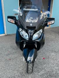 Vendo, per passaggio a moto, Suzuki Burgman 650 an executive bicilindrico. Accessori: abs, parabrezza regolabile elettricamente, manopole riscaldabili, sella riscaldabile in due modalità, specchietti richiudibili elettricamente, cambio commutabile automatico/sequenziale, tasto power (maggiore spunto), vano sottosella illuminato (56lt), presa 12v cruscotto, freno a mano, dispositivo blocco chiave accensione, cavalletto centrale e laterale. (vedi foto) il codino sotto il faro posteriore ha i gancini rotti. Per il resto lo scooter è ok, non ha problemi ed è pronto per viaggiare. Vite cvt sostituita nel 2025. Dispongo di schienale e parabrezza originali. Regalo: bauletto (foto) per 2 caschi integrali (luci stop) e coperta per uso invernale. no perditempo, non svendo.