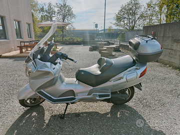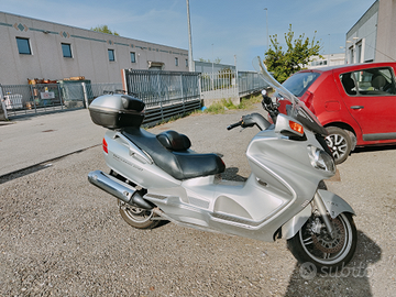 Scooter in ottime condizioni...da notare che sono state verniciate in carrozzeria d'argento tutte le plastiche nere dandogli un aspetto molto più elegante e imponente. .Gomme in buono stato (più del 50%). Parabrezza GIVI grande per un massimo confort di viaggio anche per il passeggero. Tagliando fatto 1500km fa...ha solo una piccola perdita di acqua dovuta ad un tubicino anteriore del radiatore che porta acqua al motore. Valuto permuta con scooter dai 150 ai 250cc. (anche se di valore leggermente inferiore), in particolare Benelli adiva. 3474409763 Oliviero