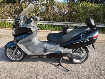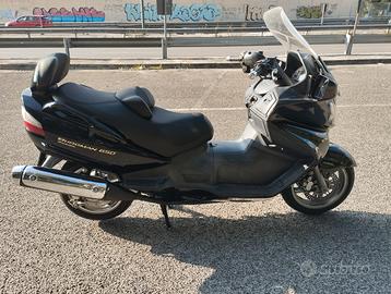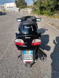 Salve a tutti, vendo solo ed esclusivamente ahimé per dispiacere del mezzo, perché dovrei e vorrei tenerlo a lungo, ma solo per interesse d'acquisto di altra tipologia di big maxi scooter sportivo usato, questo SUZUKI BURGMAN colore nero metallizzato, 650cc. modello/versione EXECUTIVE ABS, full optional, comprensivo anche di selle conducente e passeggero riscaldate, nonché manopole guida riscaldate. Il veicolo è immatricolato Giugno 2008, primo proprietario titolare di azienda di pellami, utilizzato solo il Sabato e la Domenica con la moglie. Io, secondo ed unico proprietario, acquistato il 27/07/2022 presso FAIETA MOTORS di Roma, con soli 9.554 km...attualmente, ha all'attivo 18.211 Km (dopo aver fatto effettuare il programmato ed ultimo tagliando, a 17.055 Km...il prossimo a 22.000 Km), scooterone assicurato, lo utilizzo quasi a settimane alterne oltre all'auto, sia in città che su autostrada/tangenziale. Revisione in corso e valida fino al Mese di Settembre dell'anno 2026. È corredato da doppie chiavi (di cui la seconda è nuova di serie originale e mai utilizzata) e soprattutto di book service, manuale uso e manutenzione, del proprietario, insomma il corredo completo. Il veicolo è totalmente, e ripeto totalmente tagliandato, controllato e perfettamente funzionante, tutto fatto fare dalla Suzuki Ufficiale Superpann di Ariccia, con fattura di lavori eseguiti. Di tutto e di più, compreso tagliando variatore e cambio cinghia, CVT, freni, pneumatici e persino tagliando alle forcelle anteriori, il tutto a 10.273 km...essendo io un curatore e conservatore di auto e moto,. Comunque chiedo solo persone corrette e serie...e soprattutto no perditempo. Grazie anticipatamente, Martino.