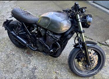Vendesi GSX750F del 99,trasformata in cafe racer;verniciata e messa a punto da officina competente,rifatti paraoli e molle interne a 11500 km,catena,cambio olio,batteria al litio e comparto rifatto e ricollocato, filtro,sprurgo freni olio,candele e filtri carburatore con carburazione rifatta,dischi anteriori e pastiglie,gomme,carburazione rifatta con pulizia e messa a punto tutto sempre ai km elencati in precedenza. Cambio per cilindrata più piccola o scambio con custom e bobber o scooter 550 cc.