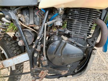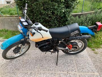 Vendo causa abbandono progetto di restauro per uso pista Suzuki Dr 400 s, indicativamente anno 1981/1982, completa di tutte le sue parti, ad eccezione fatta per le due fiancatine laterali, motore funzionante. La moto è stata ferma qualche anno, sono stati fatti gli interventi basilari per la messa in moto come cambio olio e controllo degli organi principali, ha avviamento soltanto a pedalina, non ha avviamento elettrico, ha serbatoio maggiorato Acerbis, ammortizzatori posteriori Marzocchi, le frecce posteriori ci sono ma non sono state messe nelle foto, serbatoio originale non ce L ho. Moto ottima per chi vuole divertirsi in campagna o per modificarla per correre in pista ad eventi storici o per ricambi. No libretto e no targa. Prezzo 600 euro tratt. Posso scambiare con moto da fuoristrada d’epoca 2 tempi.