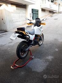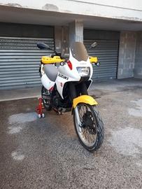 Suzuki DR 650 del 1991 iscritta ASI quindi non paga bollo e assicurazione ridotta (160 euro annui). La moto ha avuto una manutenzione scrupolosissima (cambio olio, filtri, candele, rifacimento completo impianto frenante, ecc.) inoltre è stata modernizzata con una serie di interventi tra cui riverniciatura completa, modifica parafango posteriore con installazione gruppo ottico a led, installazione di faretti supplementari a led e frecce a led sia anteriori che posteriori, paramani integrali, specchietti, manopole nuove, manubrio Tommaselli, cupolino maggiorato, borsa portaoggetti posteriore, rifacimento sella, verniciatura terminali e collettorie e tanto altro. Voglio precisare che nessun intervento ha riguardato la meccanica ed il motore quindi la moto è assolutamente sicura. Avviamento elettrico. Revisionata. Possibilità di spedizione in tutta Italia.