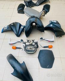 Pezzi di ricambio, tutte le carene in buone condizioni, forcella anteriore posteriore ammortizzatore motorino di avviamento batteria Coppolino, frecce manubrio