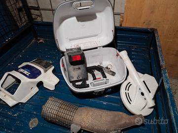 Suzuki dr 600 , la moto va in moto , c'è da cambiare alcune cose ,vanno spese circa 500 €. , va fatta frizione ,trasmissione , ganasce e pinza anteriore , dispongo come da foto di pezzi originali (porta targa ,marmitta , copri disco ecc
