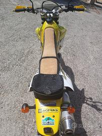 Rara Suzuki drz 400 Valenti, avviamento elettrico impeccabile, doppia omologazione enduro cerchi 21 18 e supermotard 17 17, omologata per passeggero con pedane originali, preparata con manubrio acerbis, riser Tomaselli, mozzo posteriore rinforzato, sella antiscivolo, vari ricambi, grafiche originali Hyena, impianto elettrico semplificato, gommata Michelin Enduro al 70%. Ottima, perfettamente funzionante, qualsiasi prova. Da collezione, bollo ridotto, possibile iscrizione moto d'epoca, vendo per inutilizzo o scambio con Fantic Caballero 500 solo motore Minarelli con mio conguaglio. Scrivere per video.