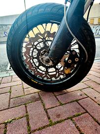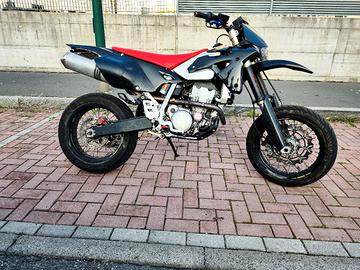 Vendo suzuki drz 400 sm, guidabile con patente A2 e perfetta per chiunque cerchi un motard di media cilindrata senza una manutenzione estrema come i 450. La moto monta i seguenti pezzi: -Serbatoio artigianale alluminio BL italia -convogliatori e kit plastiche anteriori suzuki rmz 450 -paraforcellone polisport -gruppo termico completo Athena 434cc -pompa freno radiale brembo 16x18 con relativo tubo in treccia e leva accossato rossa (non in foto) -pinza freno brembo serie oro 4 pistoni -disco braking anteriore a margherita flottante da 320mm spessore 4mm -Radiatori maggiorato derivazione CRF 450 -carburatore keihin FCR 40 derivazione CRF 450 -scarico completo leovince X3 con omologazione -Cerchi motard da 17 Excel - Gomme Dunlop mutant al 70% -Kit trasmissione supermotard -leva frizione twenty regolabile - gas rapido domino e manopole abbinate. -coprisella personalizzato One gripper E tanto altro, assieme alla moto cedo i pezzi originali come il carburatore, le plastiche e cosa più importante il motore originale in modo da poter ripristinare la moto in qualsiasi momento, è stata anche fatta una modifica alla cassa filtro per garantire una presa d'aria maggiore e compensare il carburatore ed il gruppo termico maggiorati e soprattutto lo scarico leovince completo, la moto ha 53cv rispetto ai 39 da originale. la moto ha quasi 48000 km di a 45000 è stata rifatta completamente perciò il motore Athena ne ha quasi 3000km, il prezzo è trattabile si accettano proposte.