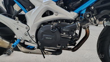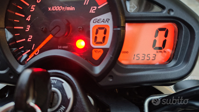 La moto ha fatto pochi chilometri, (poco più di 15.000), e gli ho sostituito: gli specchietti, le pedane guidatore, le leve freno e frizione e il terminale di scarico, (Ixill omologato), gli ho poi anche installato i tamponi para telaio Lightech, i para carter sia lato dx che sx gbracing e il porta targa con fanale e frecce posteriori aftermarket. Le gomme, da come vedete, sono delle Pirelli Rosso II nuove nuove.