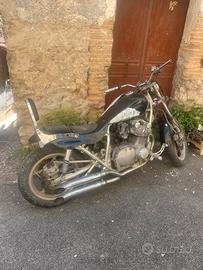 Moto suzuki gs 1000 G con documenti da passaggio, modello con trasmissione a catena, no gardano, special Castom, chopper progetto portato a termine con scarichi separati laterali, pedane avanzate, sella tipo harley e molto altro, ruote freni ecc, tutto omologato da libretto in quanto era già la versione castom, ferma da un po e trascurata ma integra , serbatoio ripulito internamente ma da riverniciare ma riaccesa recentemente ma c’è da sistemare l’impianto elettrico. Cedo intera o per ricambi anche senza motore, o solo telaio e documenti, Pioso spedire 3401565551