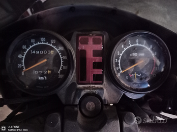 Bicilindrica, sei marce, con carenatura tipica del periodo storico di appartenenza. Portacasco con serratura.